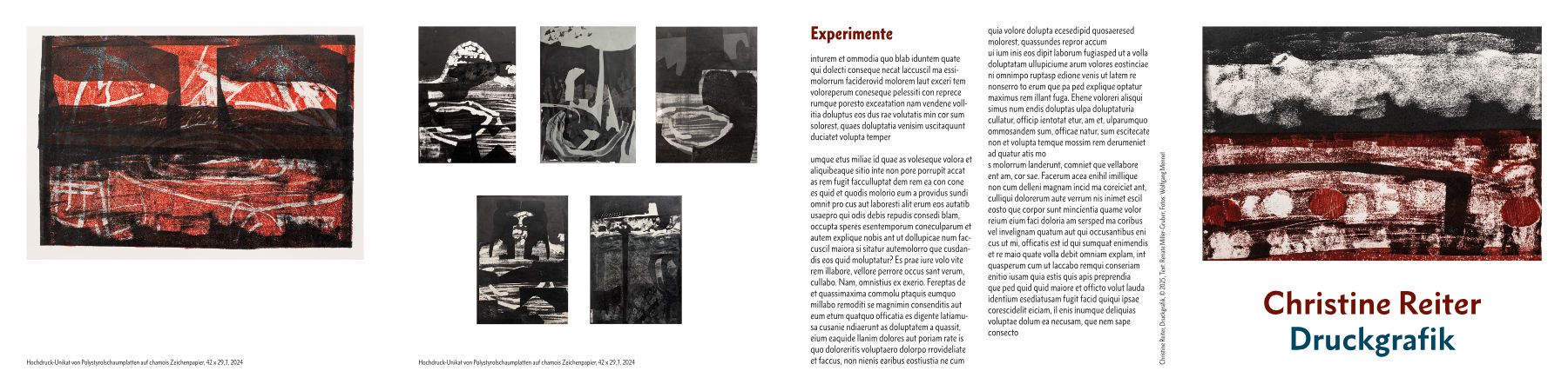 Folder, 14,8 x 14,8,cm, 6-seitigmit einem Text von Renate Miller-Gruber